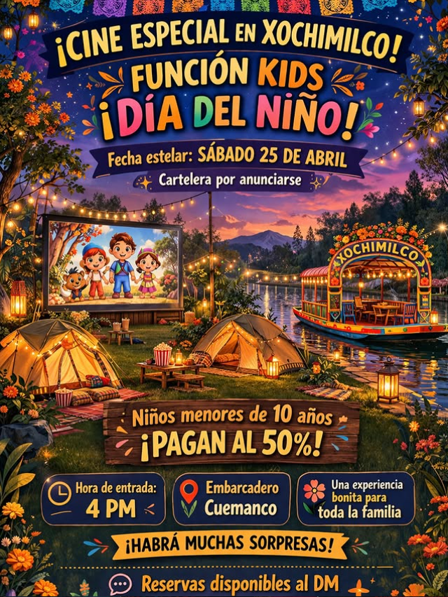 Si buscas qué hacer el Día del Niño en la CDMX, esta experiencia de cine bajo las estrellas en Xochimilco se posiciona como uno de los planes más originales y familiares.
