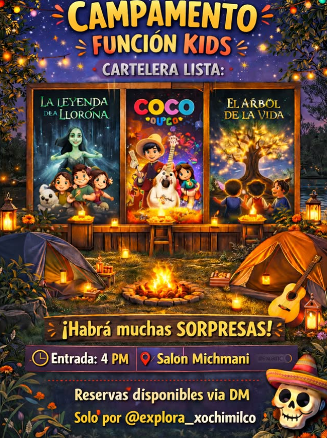Lejos de los centros comerciales y de las actividades tradicionales, este evento combina naturaleza, cine al aire libre y ambiente de campamento en uno de los sitios más emblemáticos de la ciudad: Xochimilco.
