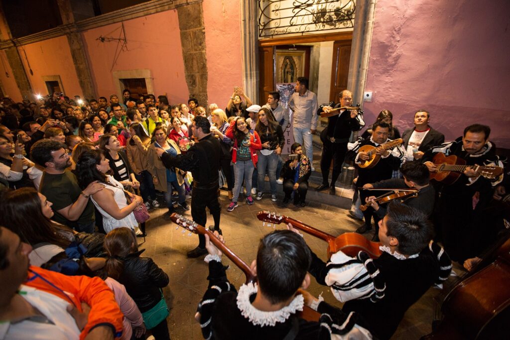 Si buscas qué hacer en Guanajuato de noche, las callejoneadas son la experiencia estrella. Recorre los callejones coloniales acompañado de estudiantinas que cantan, cuentan leyendas y llenan de magia la ciudad.